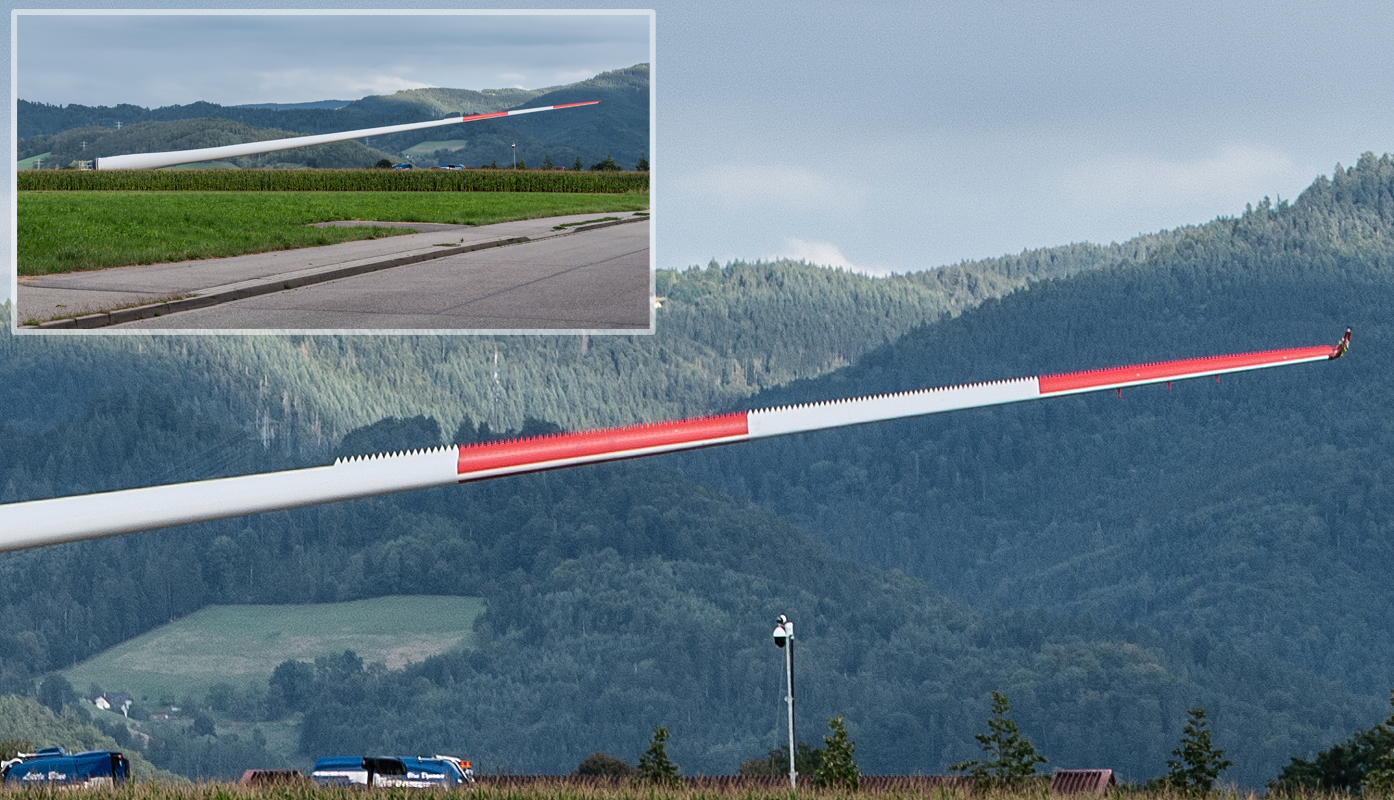 Tag und Stunde des Transports auf den Roßkopf stehen nun fest: In der Nacht zum Donnerstag, den 28. 08. 2025, soll das erste Rotorblatt gegen 4 Uhr morgens den Platz verlassen. Auf einem Selbstfahrer wird es nochmals durch Ebnet, dieses Mal in Richtung Freiburg, gefahren.