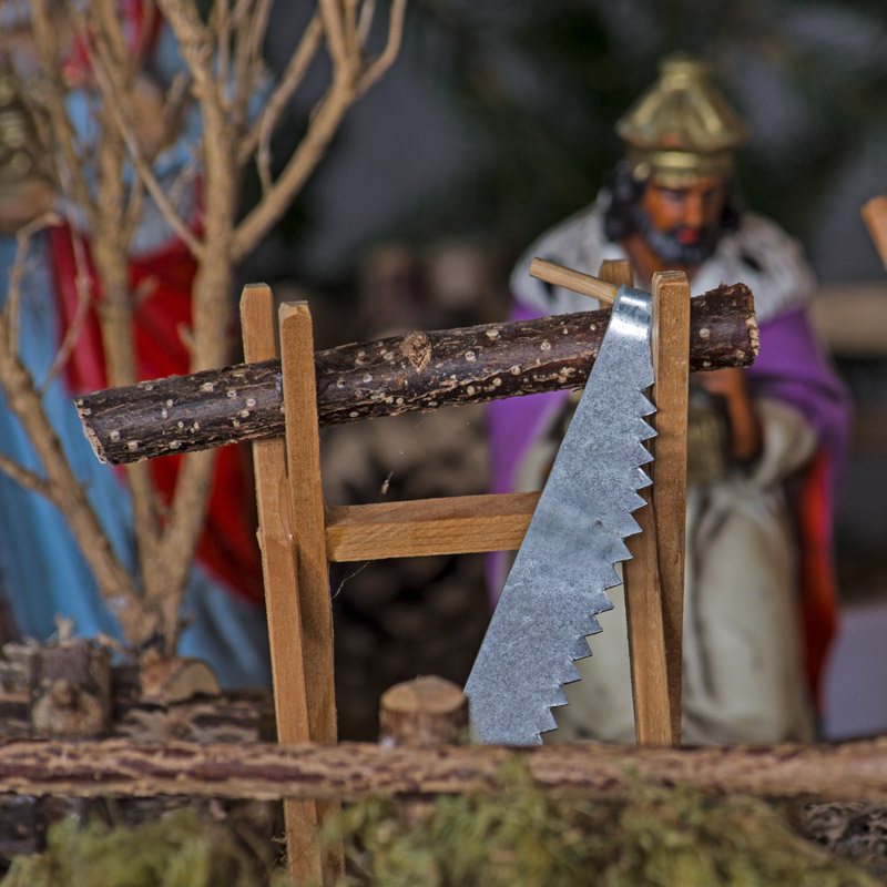 Fotos unten: Krippendetails, 2017/2018 / Foto rechts: Krippe in der Kapelle, 2021/2021