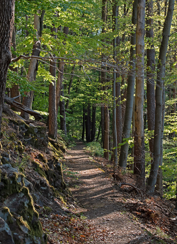 Entdeckungen, die von der Tageszeit, dem Wetter und den Jahreszeiten abhängen, vor allem aber von der Offenheit und Bereitschaft sich Zeit zu nehmen und den Weg nicht nur einmal zu begehen. Manche der fotografischen festgehaltenen Eindrücke könnten daher auch an vielen anderen durchgängig bewaldeten Weg aufgenommen sein.