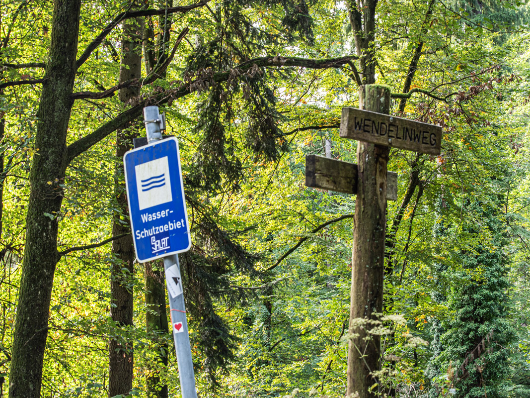 Der Alfons-Schüle-Weg führt unterhalb des Hangabbruchs rechts weiter ins hintere Welchenbachtal. Nach links biegt steil ansteigend der St. Wendelinweg ab, auf dem auch der Pilgerweg weiterführt.