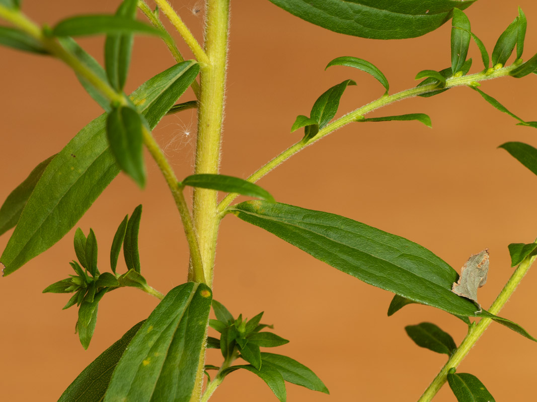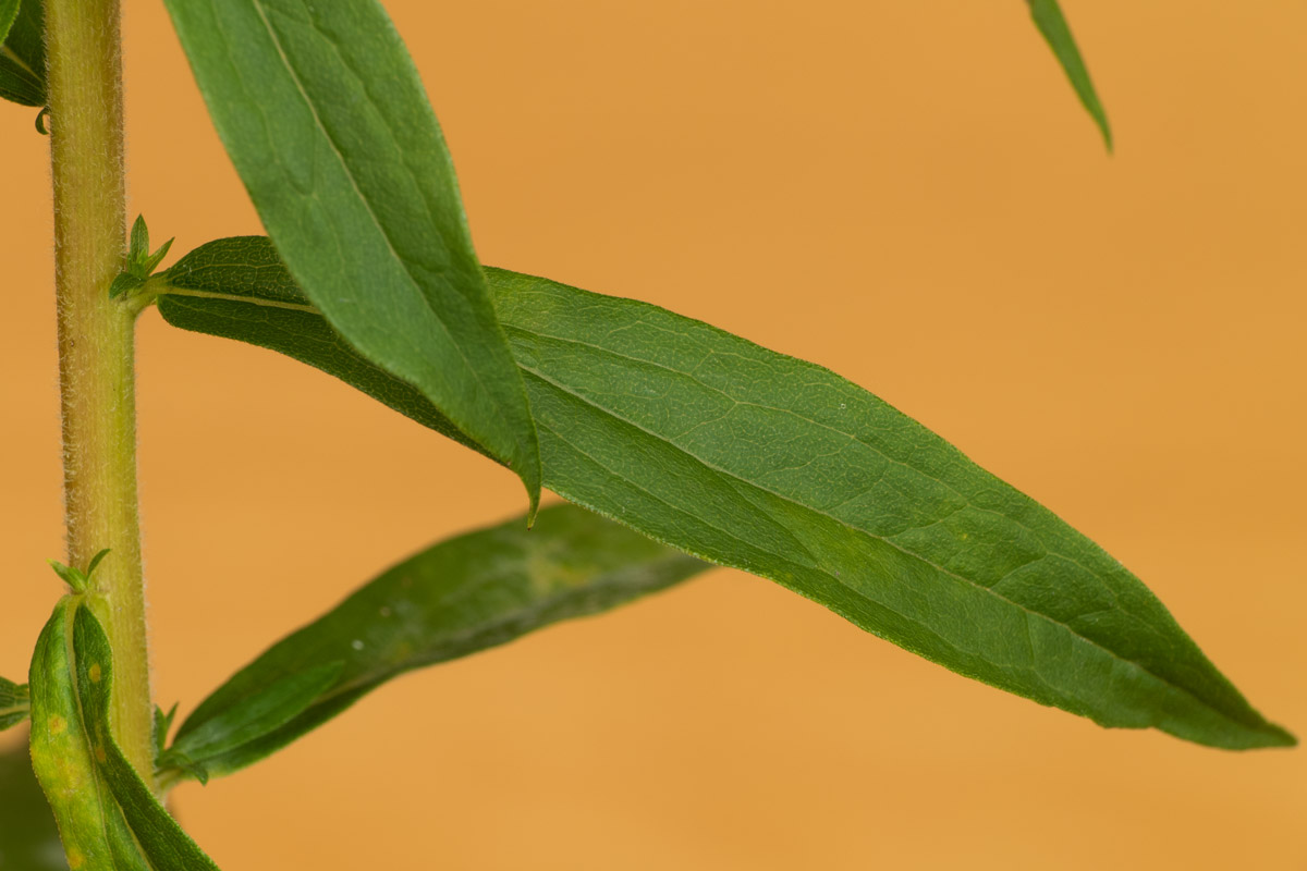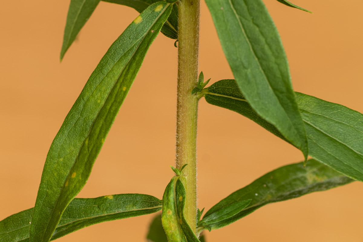 Stängel aufrecht, dicht beblätter, fein behaart und grün.