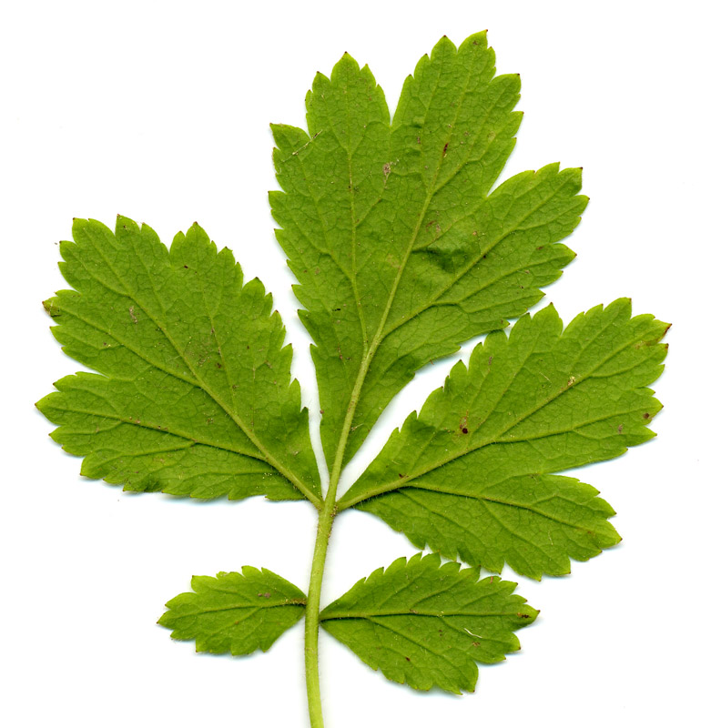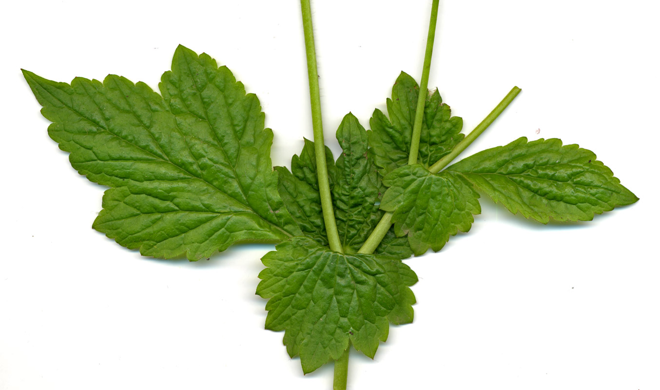 Die Grundblätter sind langgestielt, gefiedert, mit großen Endfiedern. Oben, nahe der Blüte sind die Fiederblätter, stängelumfassend und wirtelig angeordnet. Alle Fiederblätter sind grob gezähnt und eingeschnitten.