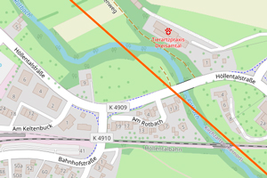 Kartenausschnitt von OpenStreetMap mit der Lage des Ausleitungswerks
