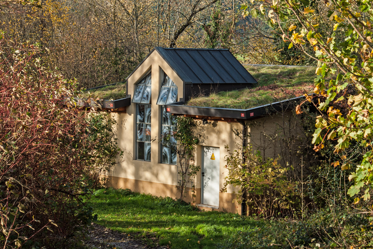 Südseite des Turbinenhauses von der Dreisam-Uferwiese aus gesehen
