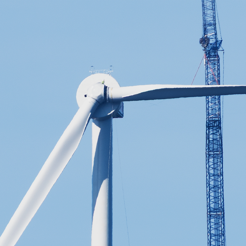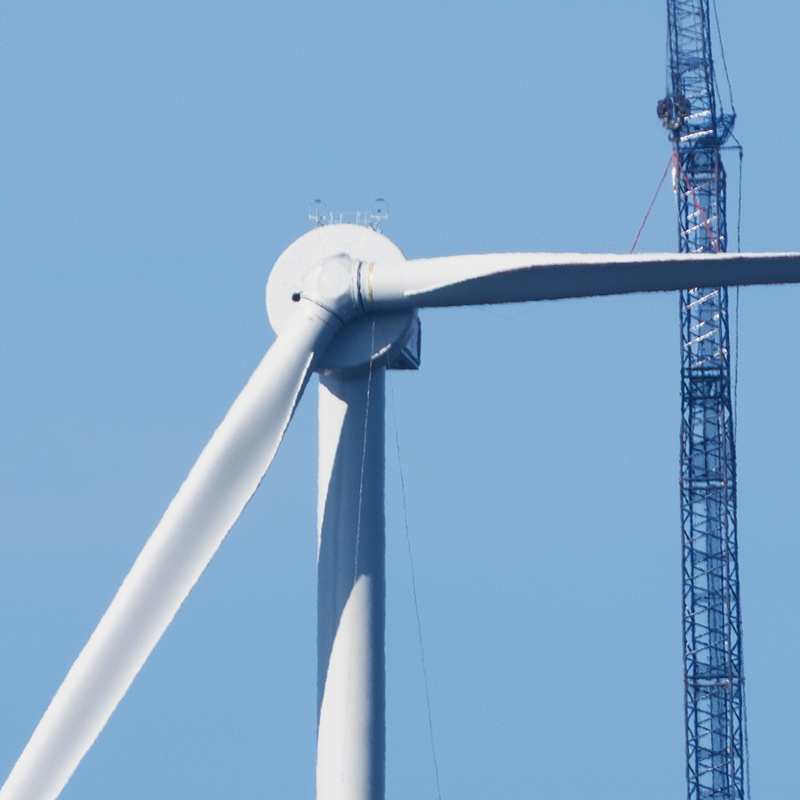 Im Vergleich zu den Rotorblättern der bisherigen, jetzt ersetzen Windräder aus dem Jahr 2023 fällt bei den neuen Rotorblättern im oberen Teil ihrer Hinterkante ein Absatz mit eng gesetzten Zähnen oder Spitzen auf (siehe die beiden Foto-Ausschnitte oben).