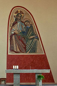 -Freiburg, St. Albert-Bischofslinde: Glasfenster und Altarrückwand, 1972