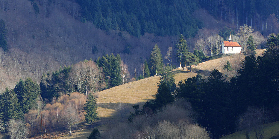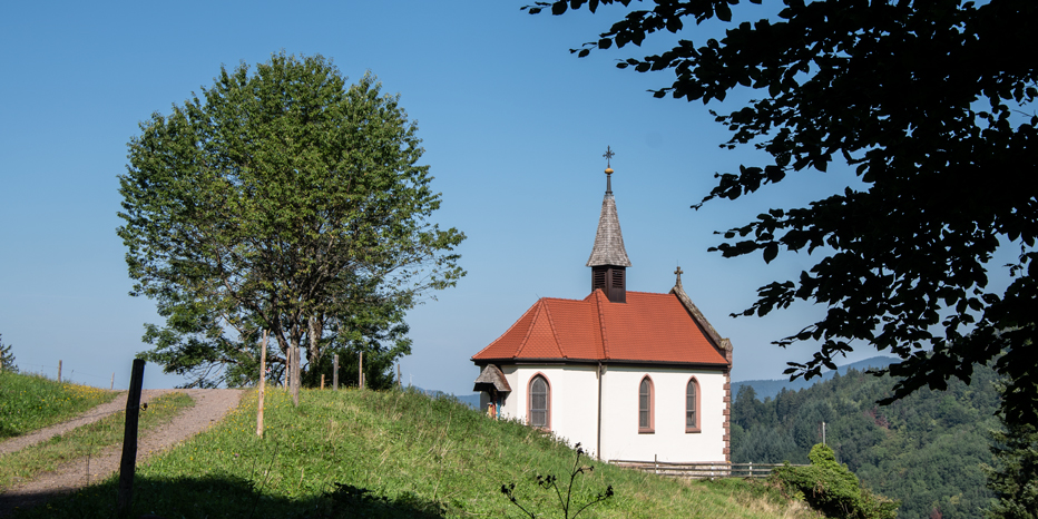 Der Vorplatz der Kapelle bietet eine herrliche Aussicht hinab nach Buchenbach und weit hinaus ins Dreisamtal bis zur Freiburger Enge.