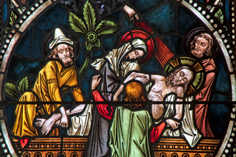Fenster rechts vom Altar: Grablegung Jesu – Matthäus 27,57-61