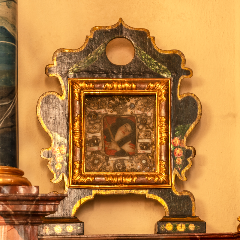 Rechts beziehungsweise links von den Johannesfiguren steht an der Wand je ein Reliquiar.