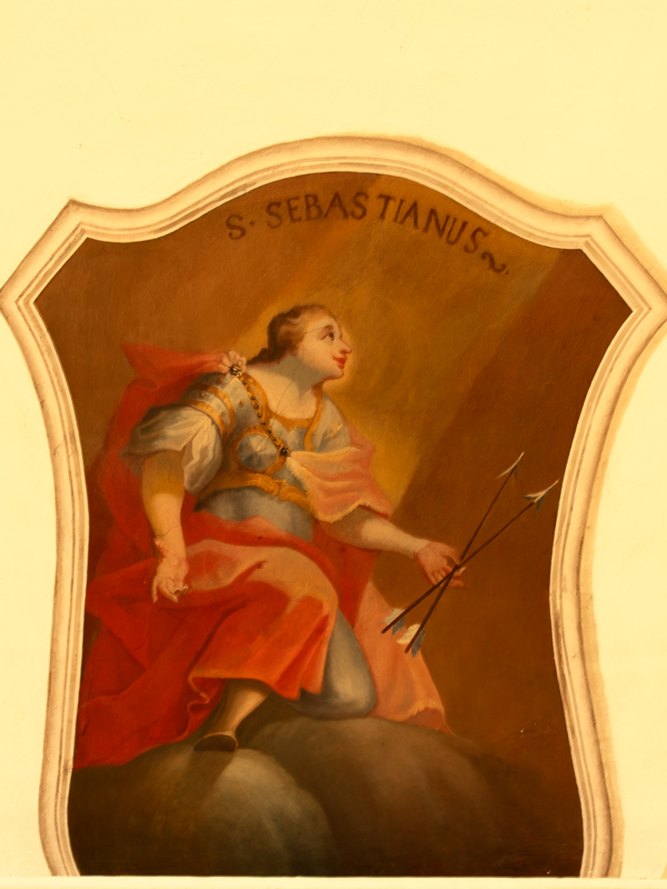 Die heute zu sehenden Deckengemälde kamen bei den Renovierungsarbeiten 1972 zum Vorschein und wurden von Johann Pfunner (1713-1788) geschaffen.