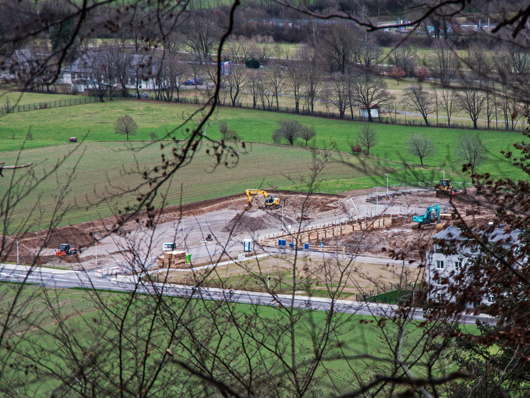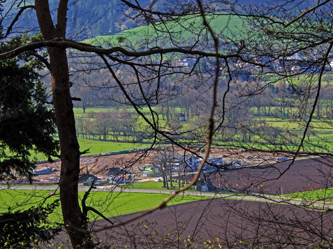 Erst wenn man die Schwarzwaldstraße weiter nach Osten schaut, bis zur Anna-Kapelle, bemerkt man die Baustelle des zukünftigen Sportplatzgeländes des SV Ebnet.
