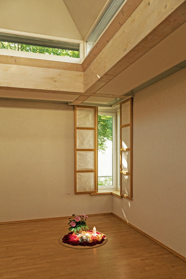 dahinter das Dach des MeditationsraumsMeditationsraum der Cella