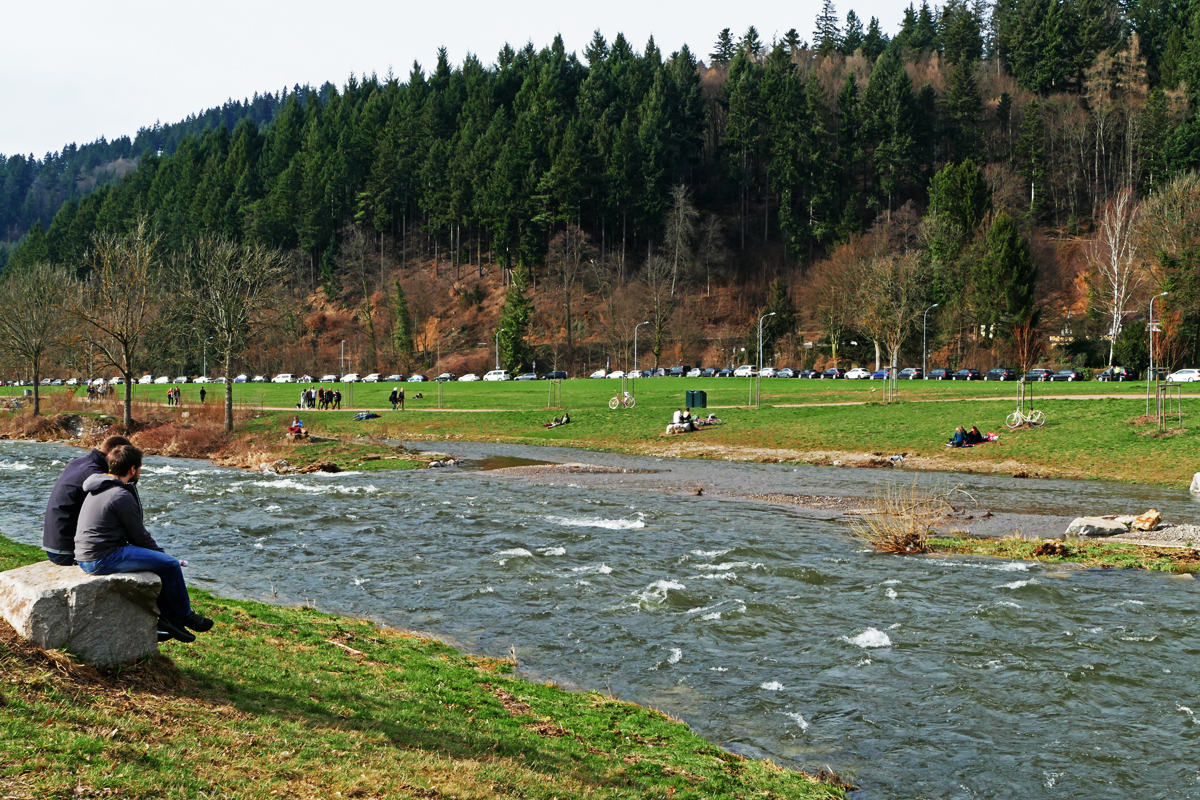 Foto rechts: Blick nach Nordost vom Dreisamufer aus