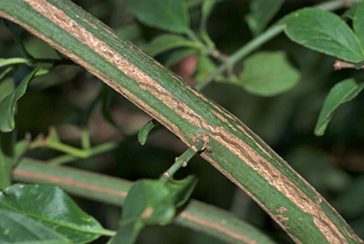 Junge Zweige grün bis grau-braun mit zwei bis vier weißlichen Korkleisten. Rinder alter Sträucher grau-braun, längsrissig.