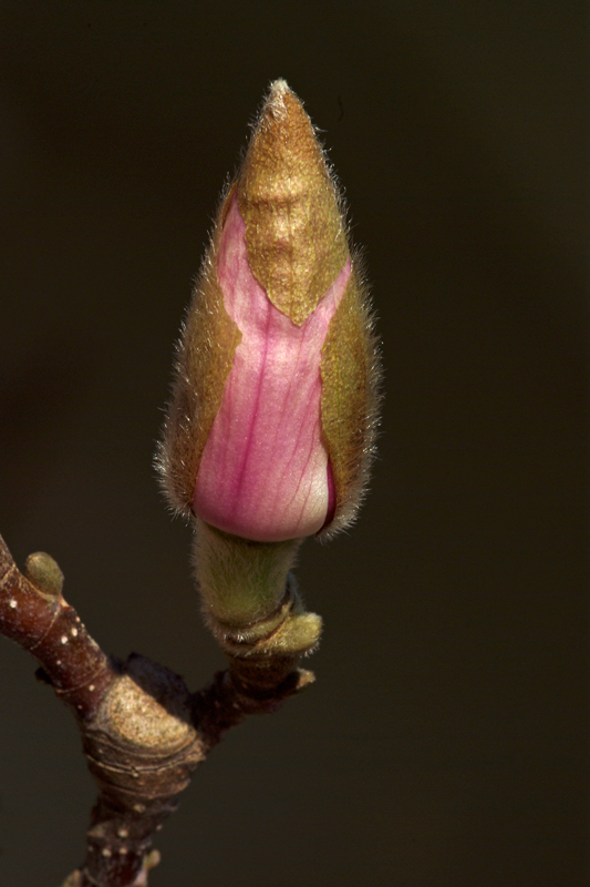 Blütenknospen, seidig behaart, werden schon im Herbst angelegt.