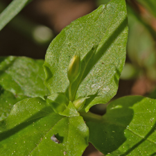 Hellgrüne, rundlich oder lanzettliche Blätter, spitz, gegenständig, 2 bis 3 cm lang.