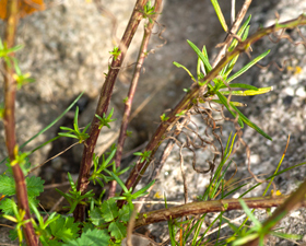 Stängel am Pflanzengrund / Stängel und Laubblatt / Blattgrund, stängelumfassend / Blattachsel mit Blütenknospe