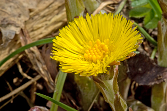 Der Huflattich (Tussilago farfara) ist eine 5 – 20 cm hohe, krautig Pflanze mit gelben Blütenkörbchen. Zur Blütezeit ist sie ohne Laubblätter. Der Huflattich wächst an Wegrändern, auf feuchte Äcker, steinigen Matten, Moränen bis 2.300 m.