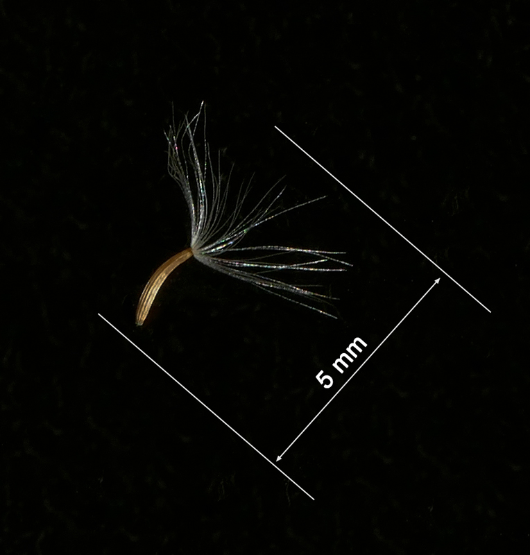 Frucht (Achäne) länglich, 10-rippig; reinweißer Flugschirm (Pappus).