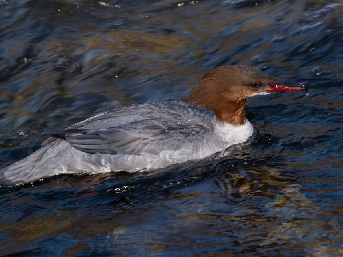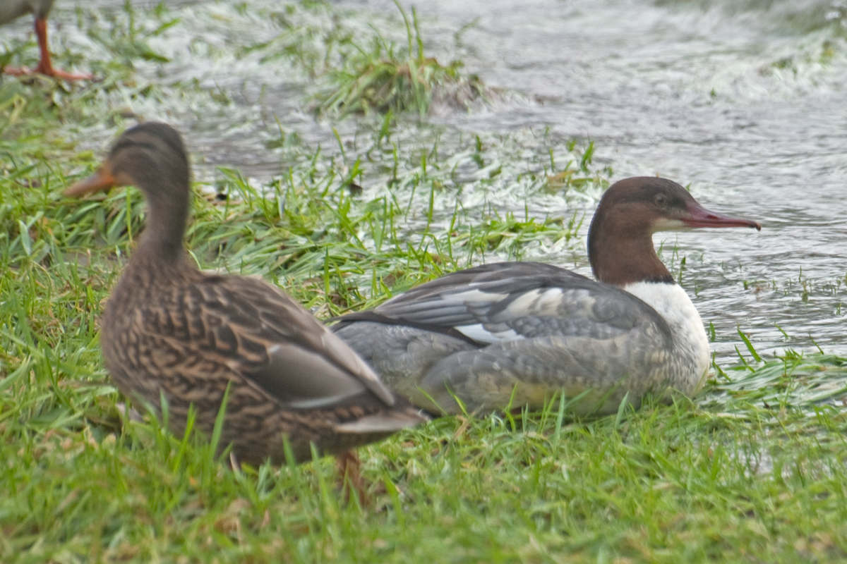 Gänsesäger-Paar (Mergus merganser) in der Dreisam, Höhe Berthold-Gymnasium, Freiburg-Waldsee