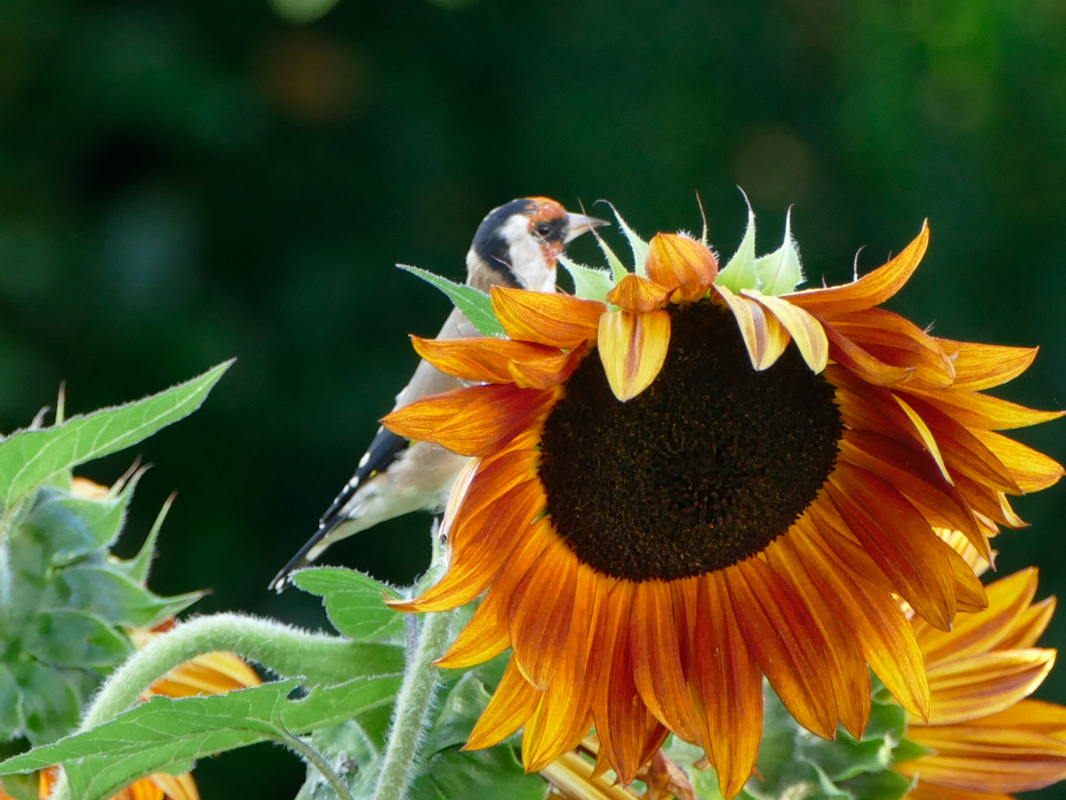 Stieglitz - Carduelis carduelis auf dem Blütenkopf einer Sonnenblumen